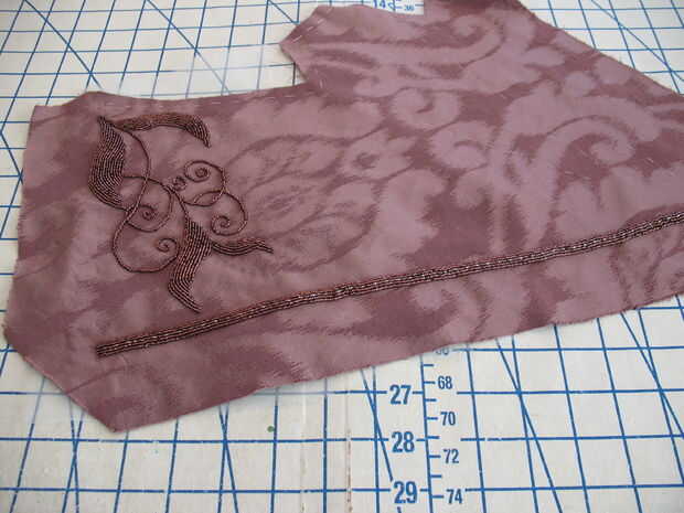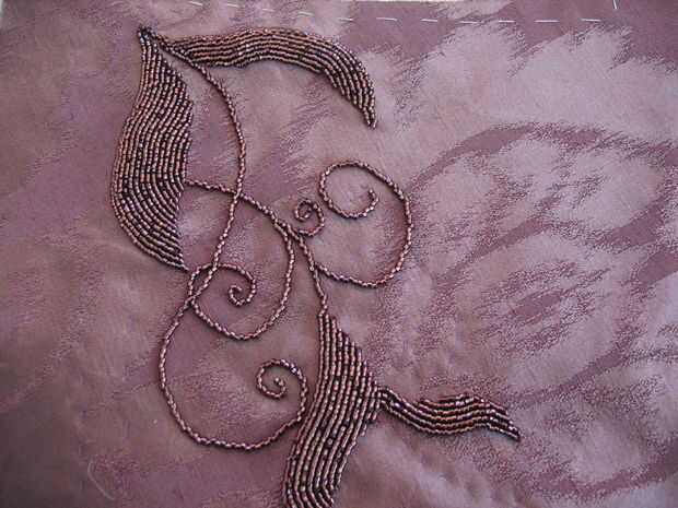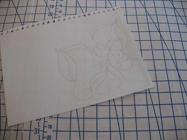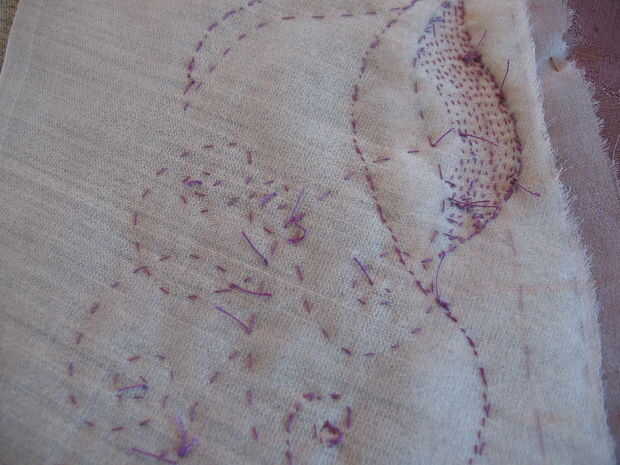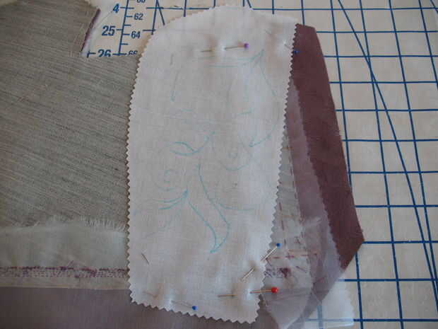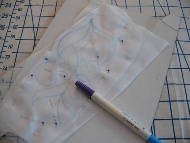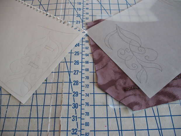 Después de finalizar el diseño con lápiz y papel, fue transferido al papel de calco y luego a un trozo de muselina pura con un rotulador de tela. Pero entonces ¿qué?