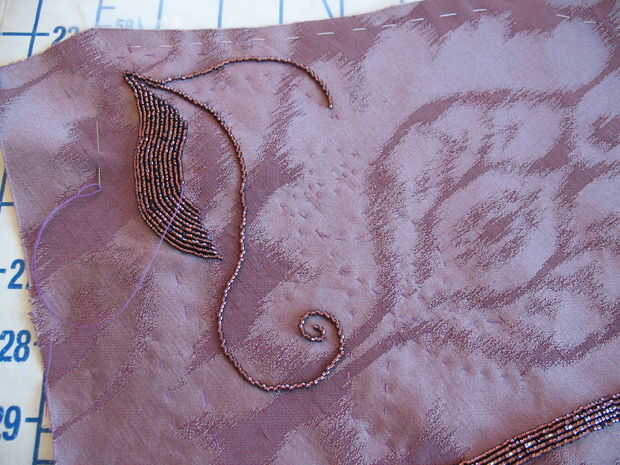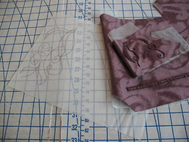 Ya que iba a añadir una capa de organza de seda para estabilizar el peso extra creado por todos los granos, decidí colocar el diseño directamente sobre la seda. Porque es tan pura, rastreando la imagen era fácil.