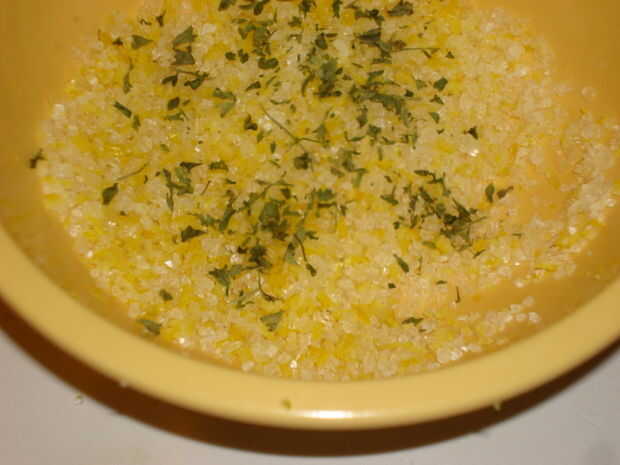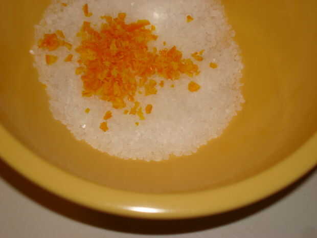 Triturar la sal en la cáscara con los dedos para liberar los aceites de la fruta. Usted comenzará a notar una apariencia aceitosa cuando los aceites se liberan.