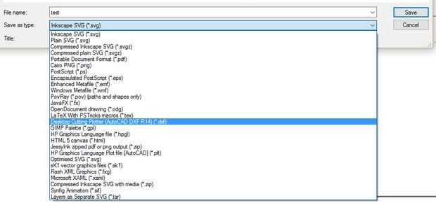 El software básico de la cortadores de vinilo silueta necesita archivos de cierto tipo. En este caso tenemos que guardar el archivo en el formato "Plotter de corte de escritorio AutoCAD DXF" como se muestra.