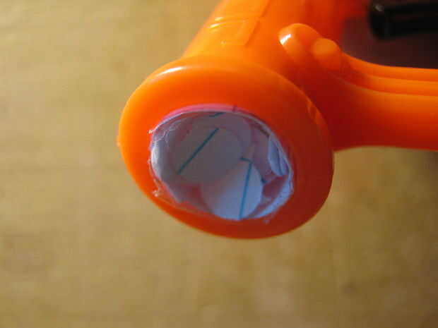 He modificado una Blastzooka extrema BuzzBee para disparar 6 Nerf dardos elite, estilo de la escopeta. Inicialmente lo hizo disparar dardos solo, pero era demasiado poderoso como para dejar que mis hijos utilizan. Deja ronchas en su cuerpo y también