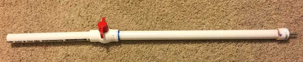 Pegar la válvula de bola y compartimiento de aire: cemento de PVC se aplican en el interior de uno de los extremos de la válvula de bola y el exterior del compartimiento del aire. Las piezas encajan y gire un cuarto de vuelta. Asegúrese de que usted no consigue cemento de PVC en "bola" en la válvula de bola. Esto evitará que la válvula de bola de la curva.