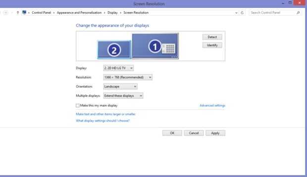 b. este menú le permitirá organizar al nuevo monitor en relación a la pantalla principal. La pantalla principal aparece como 1 en este diagrama.
