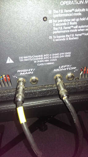 Utilizando un cable de altavoz (que es diferente de un cable de instrumento) Conecte su altavoz a la parte posterior de la mezcladora. puede ejecutar hasta 4 altavoces hacia fuera en este modelo. derecha 2 izquierda 2 en estéreo.