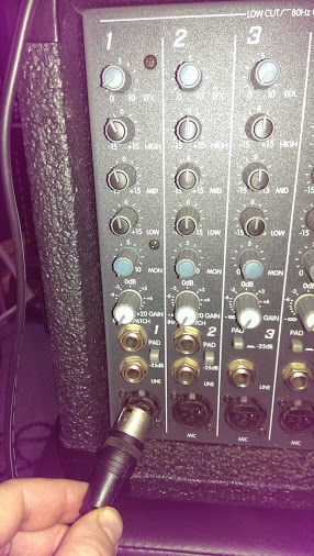 uso del conector XLR de había entrada de canal 1 enchufe el cable del micrófono en. En este canal tiene control de volumen (ganancia), un 3 banda EQ y nivel de efectos. Utilice el mismo método para Guitarra etc. utilizando la línea de 1/4 de entrada en su lugar.