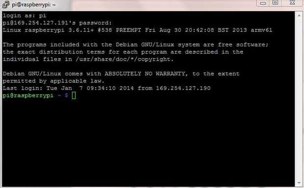 Una sesión en la frambuesa Pi usando SSH, VNC o un monitor y abrimos la Terminal. Haga clic aquí para obtener más ayuda sobre la conexión a la frambuesa Pi