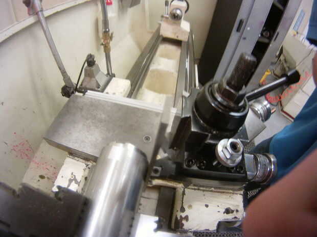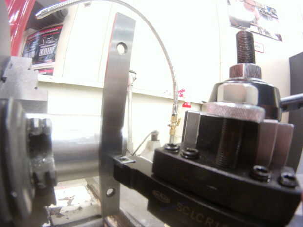 A continuación, mueva la herramienta hasta que el borde de corte está en condiciones de entrar en contacto con el diámetro exterior de la pieza de trabajo. De nuevo la herramienta a lo largo del eje X hasta que haya cerca de 1/4" entre la herramienta y el caldo. Tomar la regla u otro objeto y manténgalo así para el filo de la herramienta es más o menos centrado en la longitud de la regla. Luego, avanzar en el eje X hasta el borde de corte sólo en contacto con la regla. Ten cuidado, a mucha presión romperá el carburo.