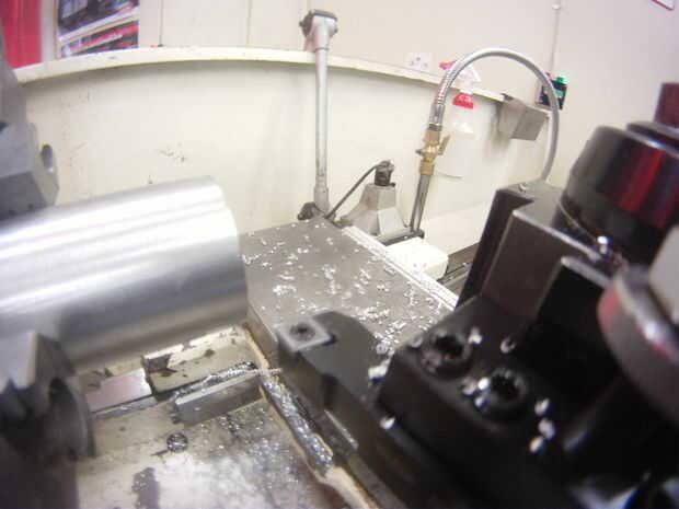 Usted querrá tomar frente a cortes, en una denominación de origen como grande o más grande que el radio de la nariz de la herramienta. Mi insertos tienen un. 031" radio de la nariz, así que empecé con 40 mil (. 040") denominación de origen. Tomar un corte de frente, hacia el centro de la población y luego dejar de mirarlo. * Estar seguro del torno no puede iniciarse mientras su mirada en el it. Si la herramienta es perfectamente centrada, se verá un acabado liso hasta el centro. Si la herramienta está debajo del eje del huso, se verá un pequeño trozo de material que estaba por encima de la herramienta y no corta. Si la herramienta está sobre el eje, el mismo trozo hubiera estado presente, sin embargo, es probable que usted empuja con las superficies de corte no de la herramienta. Todavía podrá ver algunos arañazos en la pieza de trabajo, pero sobre todo, poder contar porque debe tomar más fuerza para cortar el último poco.