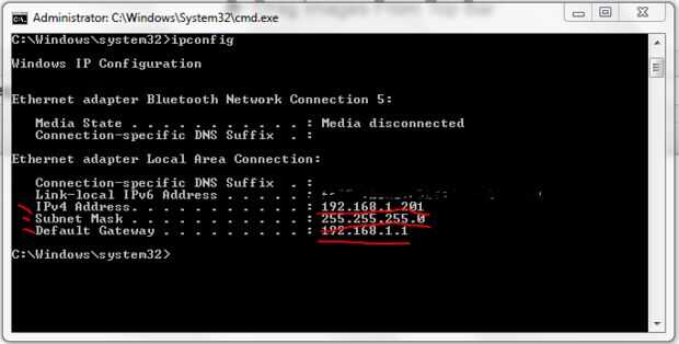 Escriba "ipconfig" y anota tu dirección IPv4, la máscara de subred y puerta de enlace. Se necesitan estos para más adelante.