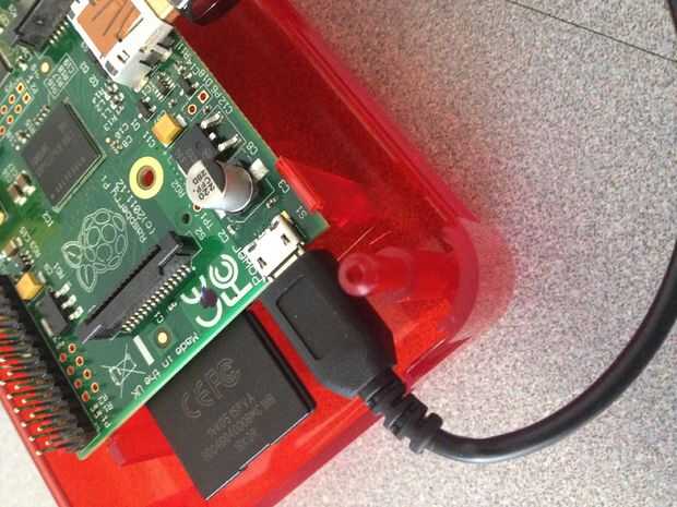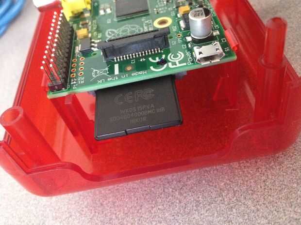 El paso de abetos es poner la tarjeta SD en la ranura en la parte inferior. Se encuentra en la parte inferior de la placa madre al lado con el mini puerto USB.