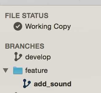 Ahora su rama de característica se ha creado en función de/add_sound. Cometer y los cambios como normal para esta rama hasta la característica se ha implementado totalmente.