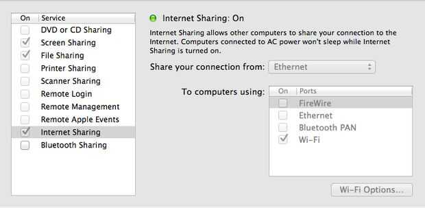 3. ir a preferencias del sistema y activar compartir internet. Su configuración debe parecerse a la foto de arriba.
