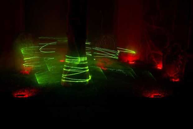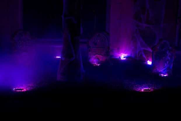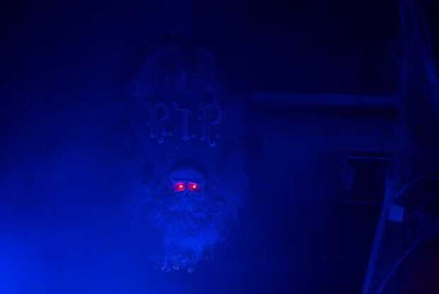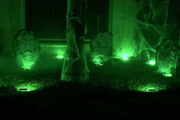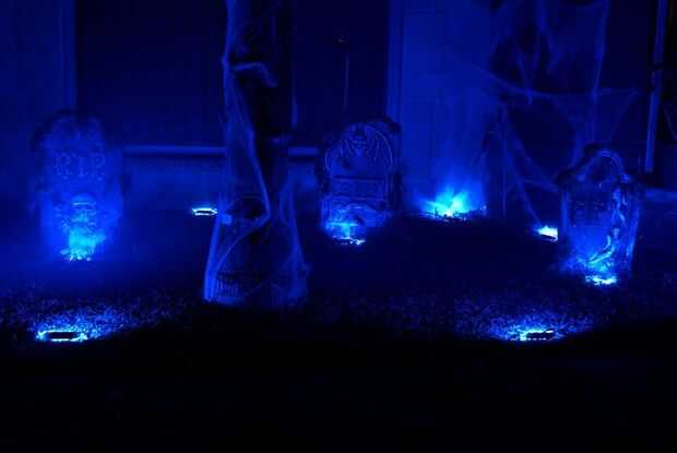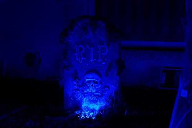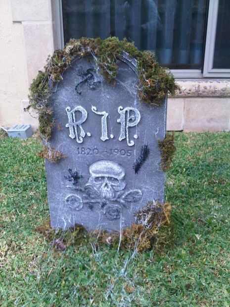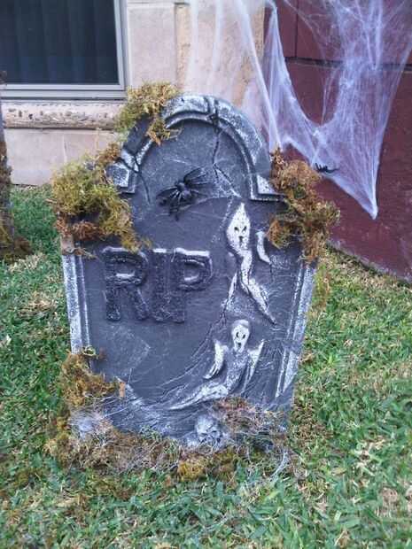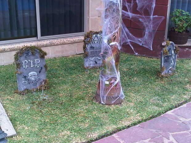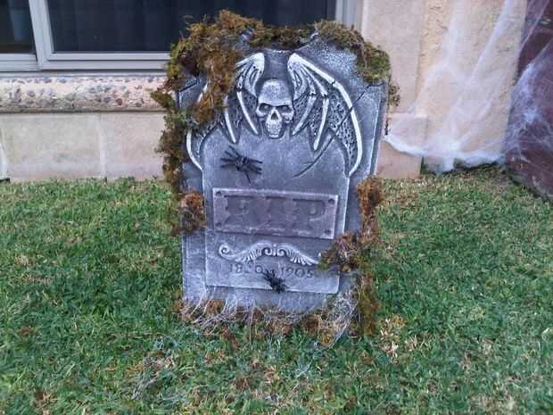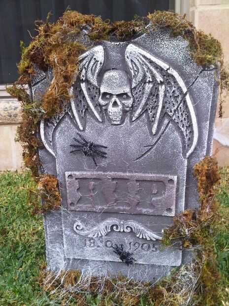 La tela de araña en la lápida se hizo con soplador aire & pistola de silicon caliente