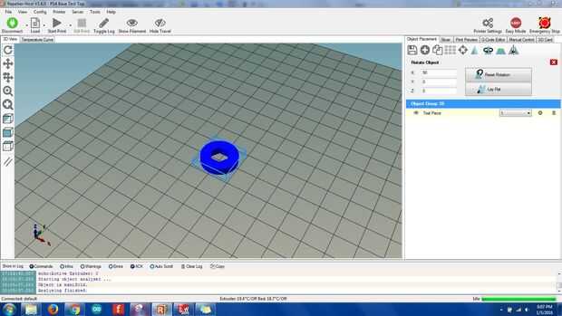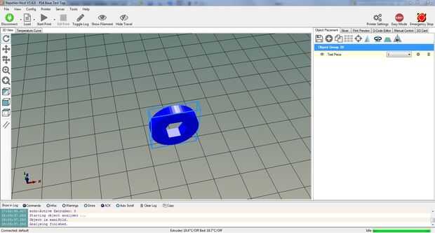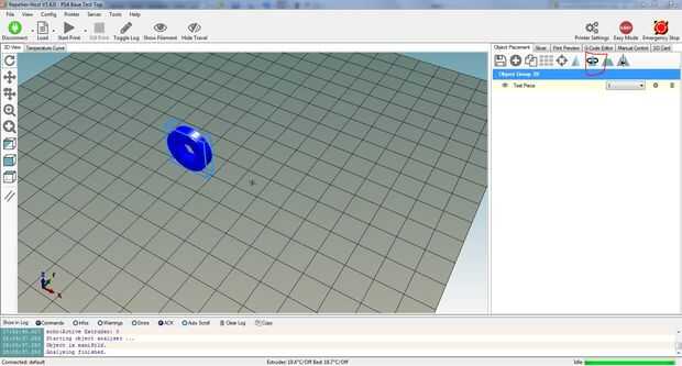 Después de conectar la impresora a Repetier usted debe ser capaz de mover manualmente la impresora, sugieren jugando con el programa de aclimatación con el programa. Pero le mostrará cómo cargar un archivo STL y estar listo para imprimir.