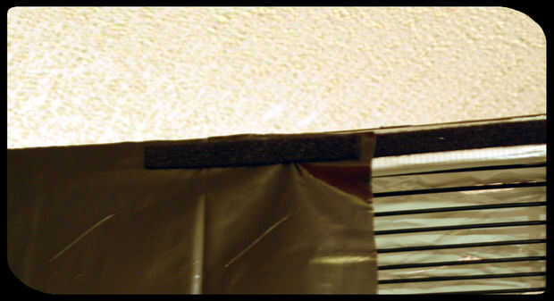 Con la "puerta" pieza enrollado y colocado encima de la plataforma y después las fotos, utiliza pequeñas tiras de la lado (esponjosa) del lazo del Velcro y colocarlos en la parte superior de la parte exterior de la hoja reflexiva en frente. Pliegue la hoja y montar gancho (áspero) lado del Velcro a los lados. Esto le permitirá doblar y pegar la hoja reflexiva como se muestra en las fotos.