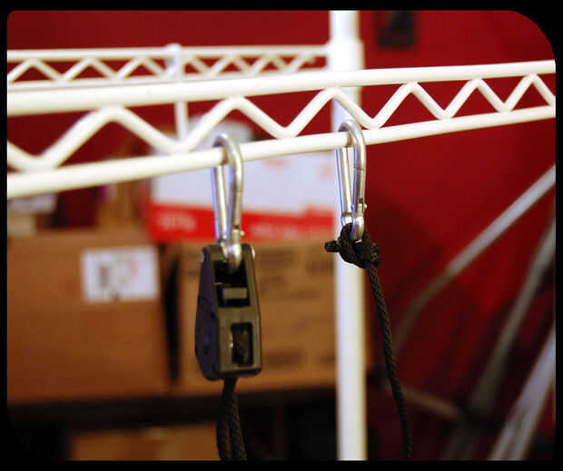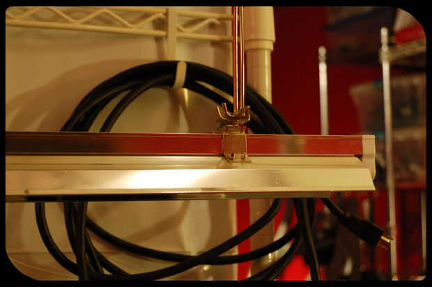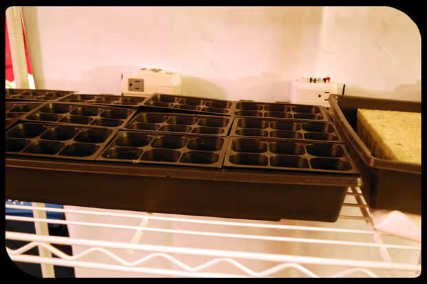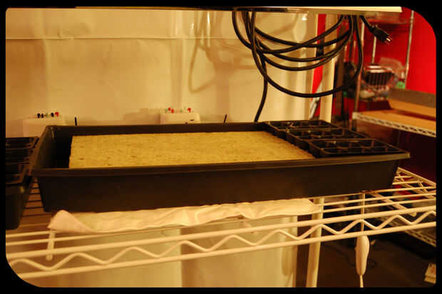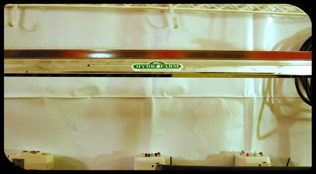 Montando una T5 4 pies crece la luz a la parte inferior de nuestro estante superior con 2 ganchos de trinquete crece la luz, podemos ajustar la altura de la luz y colocar perfectamente sobre cultivo bandejas con charolas, cubos de lana de roca o ambos. También podemos colocar almohadillas bajo las bandejas y controlar todo con nuestros contadores de tiempo.