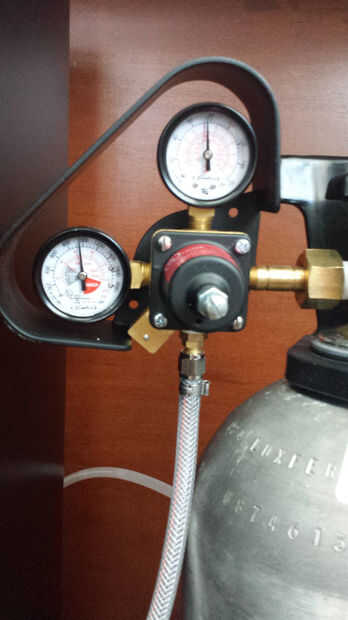 Asegure todas las conexiones y con el regulador apagado lentamente presurizar el sistema para la prueba. Desea comprobar si hay fugas primero. Esto puede hacerse fácilmente con una botella de apretón similar a Starbucks chorrito caramelo o genérico ketchup o mostazas botellas encontradas restaurantes. Coloque una pequeña cantidad de agua con unas gotas de jabón líquido y agitar. Una vez que esté todo burbujeante pueden dirigirse a las burbujas a las conexiones el regulador y el tanque de carbonatación. Prueba de todo, incluyendo las conexiones del medidor. Si no nuevo forman burbujas entonces eres bueno para ir y puede limpiar limpio. Como medida de precaución también apaga la válvula del tanque y dejarlo a sentarse durante la noche para ver si disminuye marcado de la presión del regulador. Cualquier fuga lenta bastante rápidamente como es constante agota su tanque. La buena noticia es que no es tóxico o inflamable. La mala noticia es si fuga de grandes cantidades en un ambiente cerrado, el co2 es más pesado que el aire y desplaza oxígeno. Pueden sofocar y morir. Hay detectores de co2 ahi venden bajo metros de calidad de aire cuesta $100 +. Nota: esto no es lo mismo como detectores de CO o monóxido de carbono.