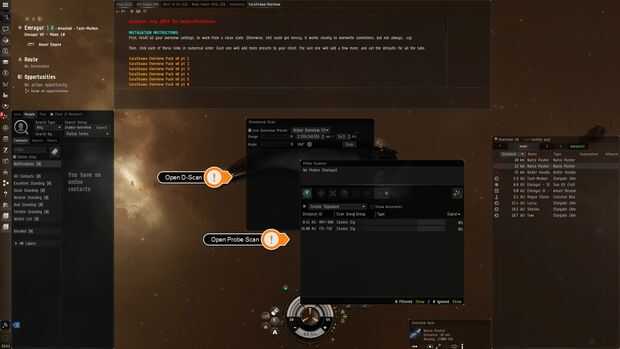 A continuación abrir mi D-scan y sonda de exploración windows y anidarlas juntos. Luego colocar en la esquina superior derecha y tamaño para encajar en la parte superior de la descripción y el lado de mi ventana de chat.