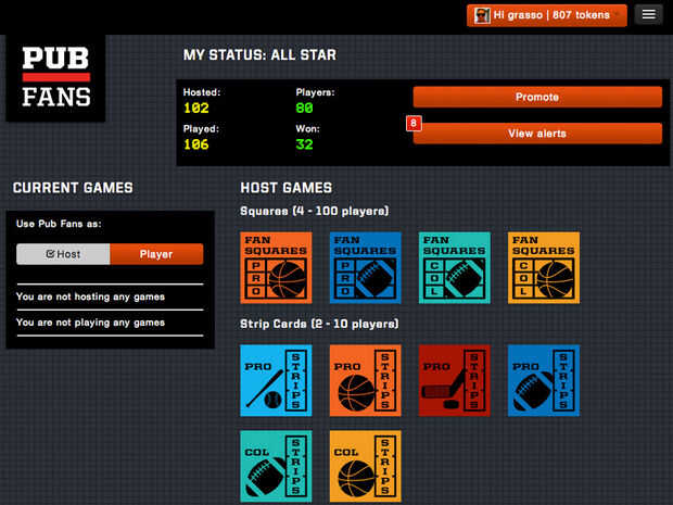 Para este ejemplo seleccione también a juegos de "Host" en tu panel de control. Como un host de la juego, puede crear juegos, establecer premios e invitar a jugadores aficionados Pub para jugar tus juegos.