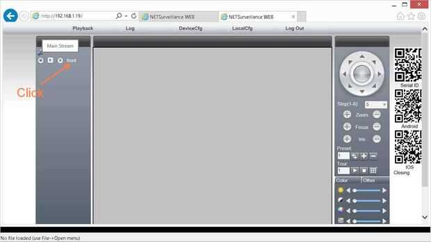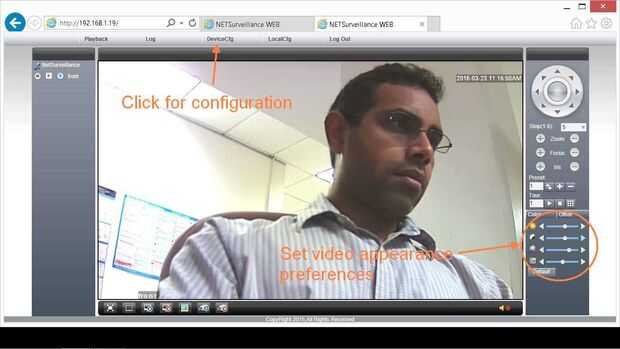 Haga clic en el botón reproducir para obtener la una alimentación en directo. Yo anteriormente a llamarse mi cámara "frente". Usted puede cambiar la configuración de la apariencia de la secuencia de vídeo, pero estos cambios parecen ser temporales. La parte más importante es la configuración de la cámara en la parte superior como DeviceCfg.