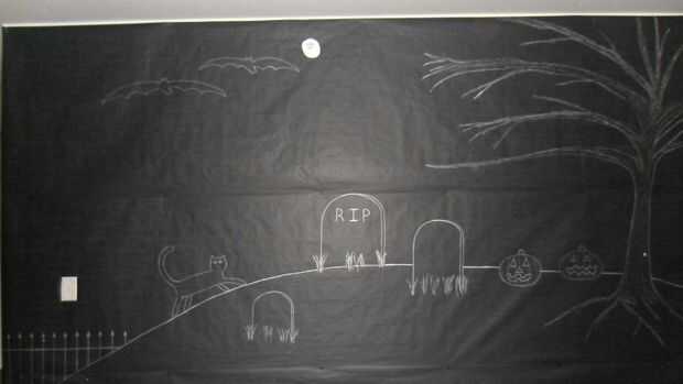 10. Utilice un lápiz para esbozar diseños en el papel. Una idea es dibujar una escena, como un cementerio, si no dibujar nada Halloween en las paredes. Algunas otras sugerencias son: telas de araña, fantasmas, bruja, Luna, buho o cualquier otro diseño que recuerdan a Halloween.