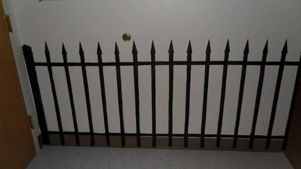 13. corte alrededor de la cerca usando tijeras o un cuchillo X-acto. (El inicio de este proceso se muestra en el cuadro 3) Para evitar cortar la pared detrás de la diapositiva de papel una hoja fina de cartón detrás del papel durante el corte.