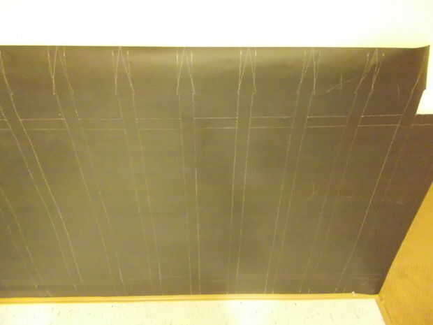 3. pin del papel a la pared mediante marcadores negros o claro para que la parte inferior del papel esté en contacto con el suelo.