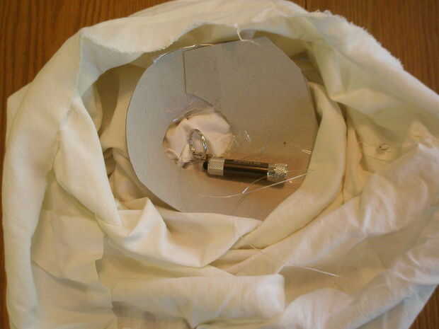 6. colocar la cartulina dentro de una vieja funda de almohada blanca con el extremo grande del cono hacia la abertura de la funda de almohada.
