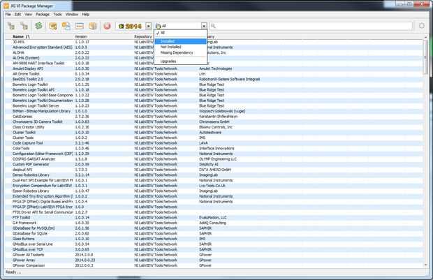 El paquete Manager realiza un seguimiento de todos los complementos de biblioteca que se puede obtener para LabVIEW. A veces el gestor de paquetes se instala automáticamente con LabVIEW. Sólo confirmar que está instalada por buscando en el menú Inicio y la apertura (ver figura 1 arriba).