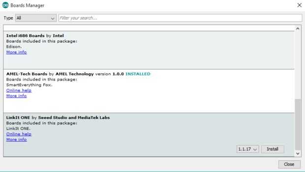 5. el Gerente de la Junta se actualizará, y tras desplazarse a la última ficha y haga clic en la pestaña que dice uno de Linkit por SeeedStudio.