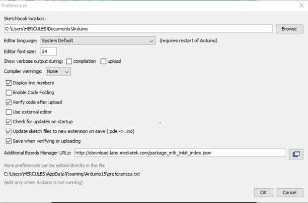 1. en el Arduino software vaya a archivo > Prefereces