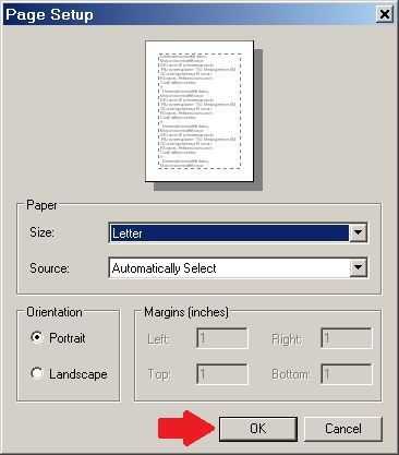 Después de seleccionar el tamaño de la página de "carta" la configuración de página debe aparecer el cuadro de diálogo como se muestra arriba. Haga clic en aceptar en el cuadro de diálogo Configurar página.