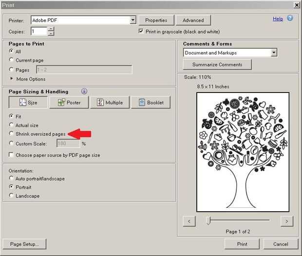 Paso 14: Cambiar tamaño de página de "Ajuste" a la "Reducción de páginas de gran tamaño"