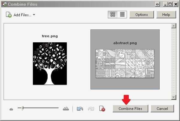 Ahora puede haga clic y arrastre a todo tipo de tipos de documentos, incluyendo archivos de imagen, en el cuadro de diálogo combinar archivos y haga clic en el botón combinar archivos.