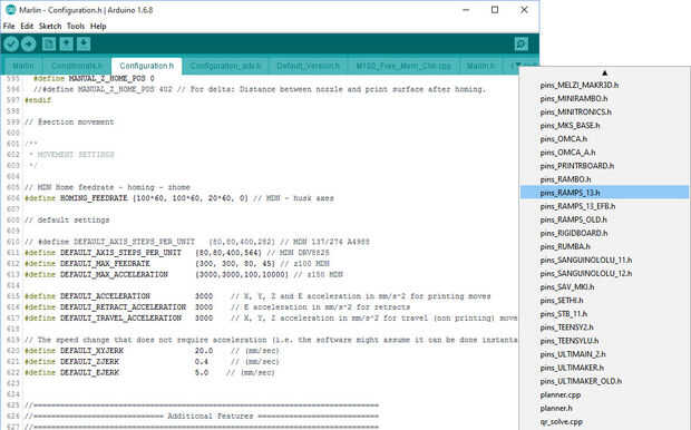 He estado usando firmware Marlin en Arduino + rampas durante mucho tiempo, igual que la mayoría de la gente 3D, por lo que usaré Marlin como fuente comparativa para la configuración de firmware.