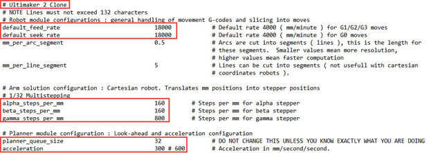 alpha_steps_per_mm y beta_steps_per_mm hay que cambiar a 160, mientras que gamme_steps_per_mm se cambia a 800.