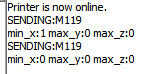 Salida de test mediante la emisión de un comando M119 a él. Esto se ve diferente que cuando se utiliza aguja, entonces en lugar de activa, obtiene un 1 si el tope es señalización de un golpe.