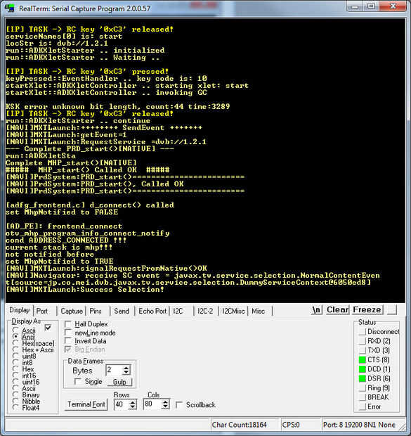 Si conectar y configurar correctamente, cada vez que pulsas el mando y la respuesta STB, verá información sobre el terminal serial de depuración.