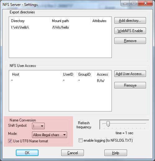 Con el fin de crear acciones NFS, descargar un software llamado nfsAxe de