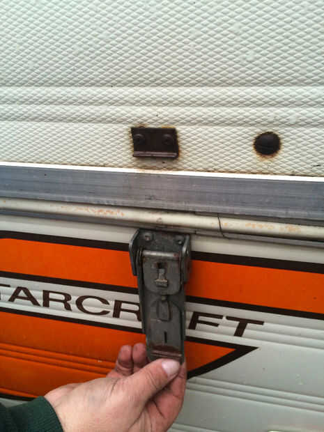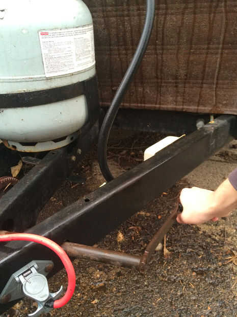 2. Inserte la manivela en la ranura de la plataforma delantera de la caravana.