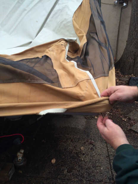 5. sacar la lona de la litera. Tome nota de los bucles de cuerda en el exterior.