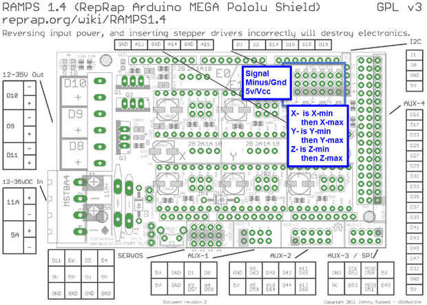 Nuestra primera tarea es identificar los pines que vamos a utilizar en nuestro tablero de rampas 1.4.