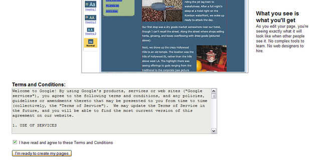 Configuración de un sitio web con Google Page Creator (1 / 6 paso)