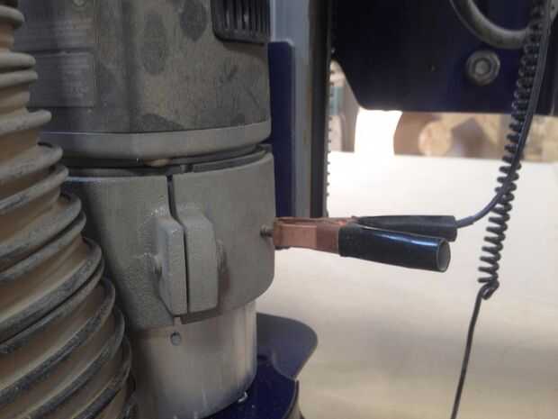 -Conecte la pinza cocodrilo al tornillo de puesta a cero en el ranurador del CNC