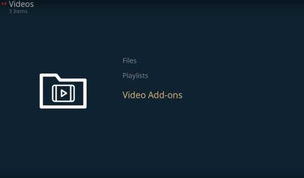 Al principio no habrá ningún contenido disponible. Tienes la opción de cargar videos desde el almacenamiento local (una unidad USB por ejemplo) o añadir algunas aplicaciones videos aseados. Desplácese hacia abajo y seleccione el Video Add-Ons. (Figura 3.0)