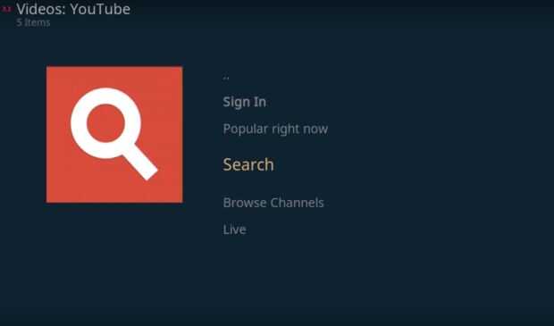 Volver a la carpeta add-ons de vídeo y seleccione YouTube.