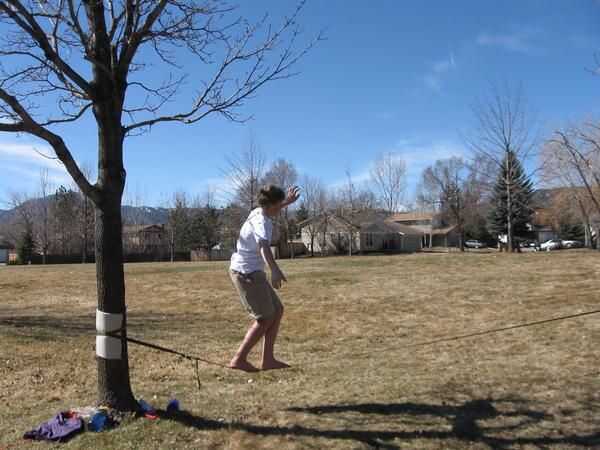 Slacklining es una actividad emergente que utiliza el equilibrio y la habilidad para caminar en una línea suspendida entre dos puntos fijos. Se puede hacer en un patio, en un campus universitario, un cañón, y hasta miles de pies sobre la tierra. Much