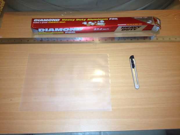Materiales necesarios: 1 - papel de aluminio resistente 2 - herramienta de corte sharp 3 - laminación papeles o cualquier otro tipo de material aislante como el vidrio, una etiqueta engomada plástica... 4 - una plancha de ropa
