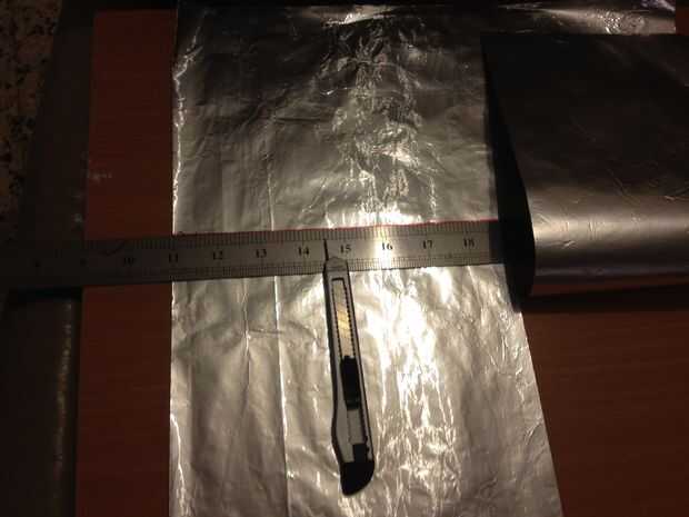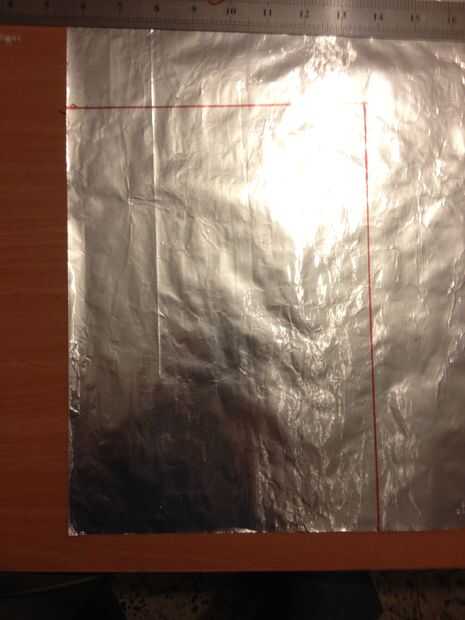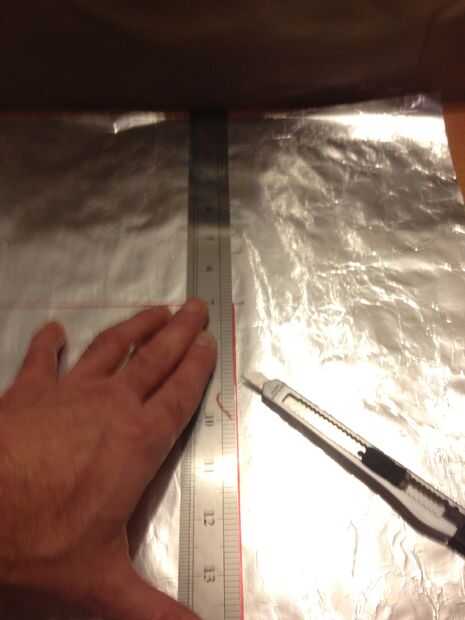 Ahora que han marcado el papel de aluminio para el tamaño específico que usted necesita, usted está listo para cortar el tamaño correcto de ese gran trozo de aluminio papel al igual que en las fotos.