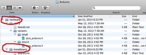 Abra la carpeta sketchbook y buscar dentro de una carpeta "Hardware". Si no hay uno, entonces cree una nueva carpeta y asígnele el nombre Hardware.
